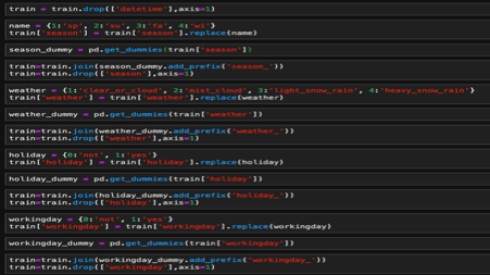 범주형 변수들에 대해 더미변수를 활용하여 전처리 하는 과정이다.