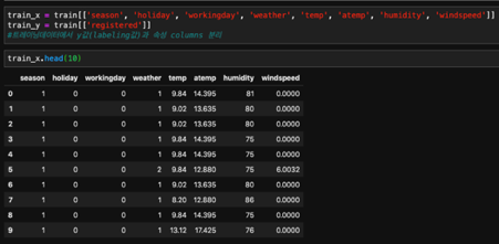 독립변수와 종속변수를 다른 데이터프레임으로 분리시켰다. 이는 독립변수의 scailing을 진행하기 위함이다.